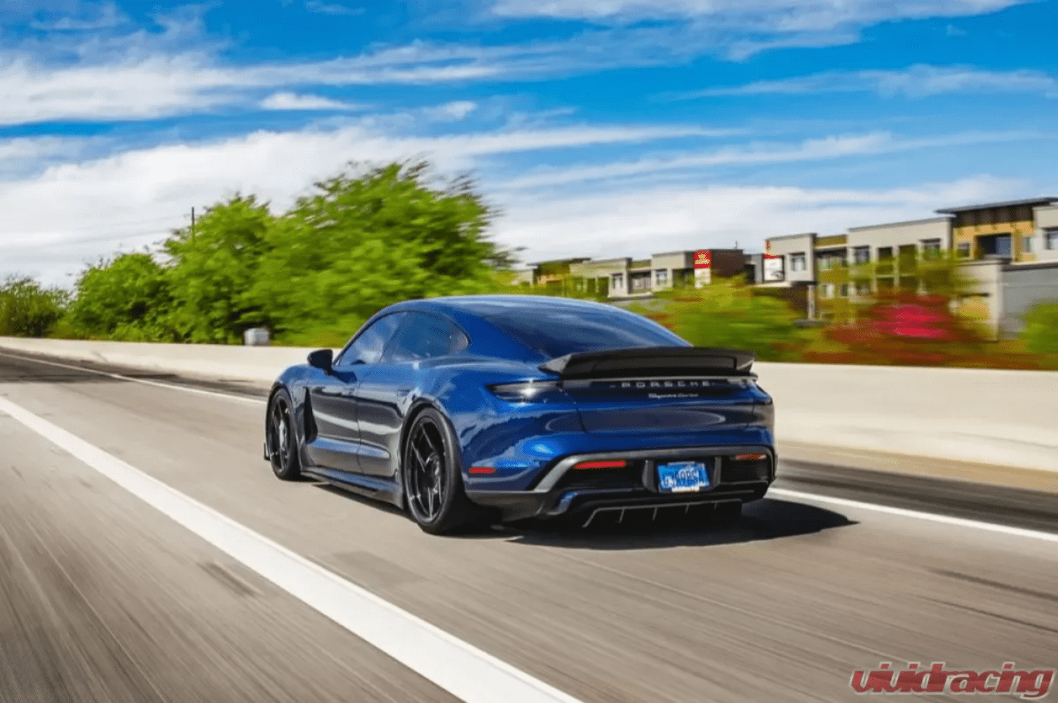 The Porsche Taycan rear end styling really shows off its performance capability. As an automotive first for Porsche, the electric vehicle has Porsche performance exuding from its soul. Enhancing the electric vehicle is limited but it can certainly be done in the styling department. Vivid Racing’s VR Aero brand has created one of the most amazing looking aero kits for the Porsche Taycan. Part of the aero kit components is this rear diffuser. The diffuser is designed to flow with the body lines while giving that extra aggressiveness to the rear end. The diffuser is full carbon fiber, manufactured from pre-preg material. Pre-preg has that glossy finish but does not require layers of clear coat to be applied after vacuum bagging. With this process, the quality and finish is simply the best! The diffuser attaches to the under body using both strong double sided adhesive tape as well as mounting to the factory bolt locations. If you are wanting to dress your Porsche Taycan up, these carbon fiber aero parts from Vivid Racing are the answer.